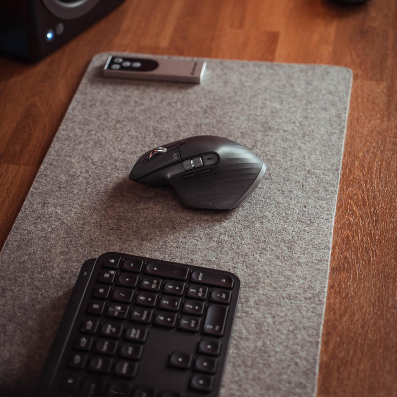 ماوس پد یا دسک پد نمدی - چرمی که برای استفاده در سر تا سر میز کار شما طراحی شده است. این ماوس پد از سه لایه تشکیل شده است. بخش نمدی: که ماوس بروی این سطح به صورت کامل روان حرکت میکند و زیر کیبرد شما نیز قرار میگیرد. بخش چسب میانی: که بخش زیرین و رویین را به صورت کاملا محکم به یکدیگر متصل میکند. بخش چرمی: که به بخش نمدی دوخته شده است و وظیفه این بخش ایجاد اصطکاک بروی میز و جهت جلوگیری از لیز خوردن ماوس پد بروی میز است. حرکت ماوس به روی این دسکپد یا ماوس پد روان است . جنس و دوخت بسیار محکم و این ماوس پد مناسب هر محیطی است از طرفی به دلیل وجود بافت و الیاف نمدی زیبایی این دسکپد از نمونه های دیگر بسیار بالاتر است. دسک پد باعث میشود میز شما نظم خاصی به خود گرفته و زیبایی آن را به شدت افزایش میدهد .